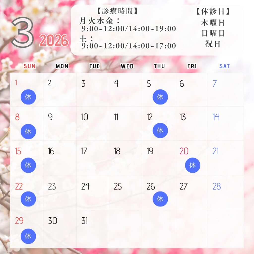 3月の診療日・休診日のお知らせ